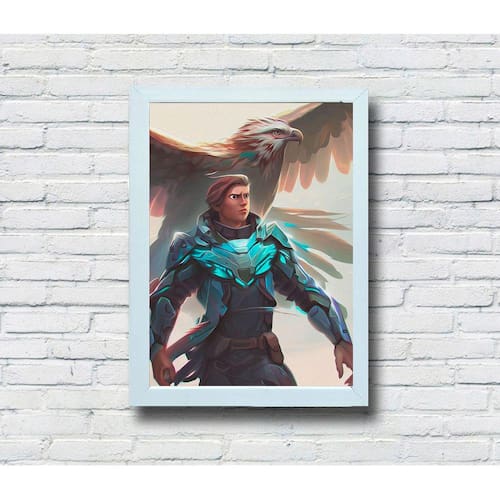 Quadro Decorativo MDF 20x28 Moldura Branca Guerreiro águia - Arte: 04