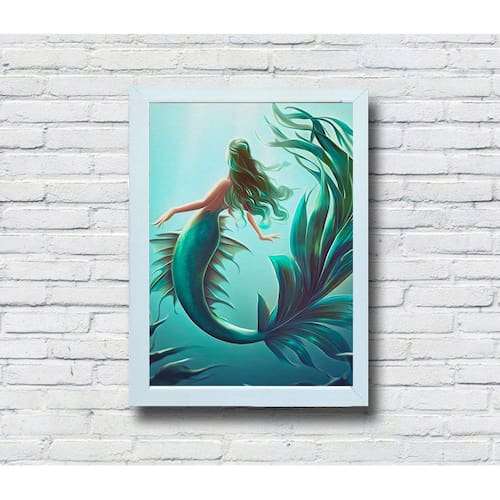 Celebre a estética requintada com nosso quadro decorativo de alta qualidade feito em MDF. Escolha entre moldura ou sem moldura, e veja como a impressão premium intensifica as cores vibrantes e a arte exclusiva da "Sereia Algas".
