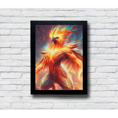 Quadro Decorativo MDF Ave Fenix - Modelo: 03 / Moldura: Preta / Tamanho: 20x28