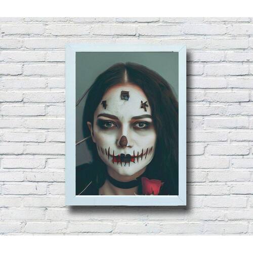 Quadro Decorativo MDF Girl Face - Modelo: 04 / Moldura: Branca / Tamanho: 20x28