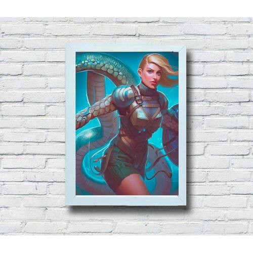 Quadro Decorativo MDF Guerreira Serpente - Modelo: 02 / Moldura: Branca / Tamanho: 20x28