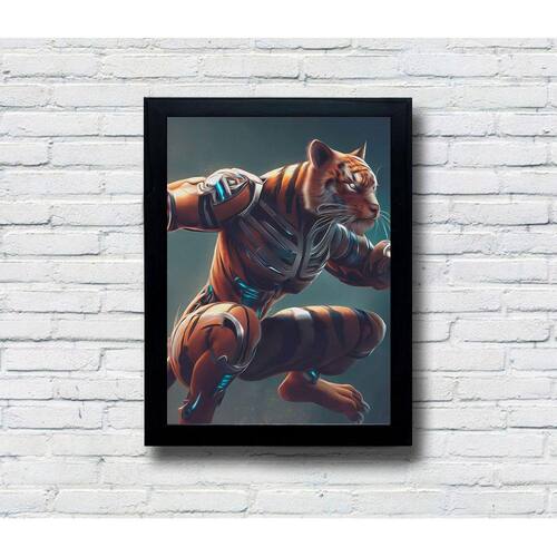 Celebre a estética requintada com nosso quadro decorativo de alta qualidade feito em MDF. Escolha entre moldura ou sem moldura, e veja como a impressão premium intensifica as cores vibrantes e a arte exclusiva do "Tigre Guerreiro".