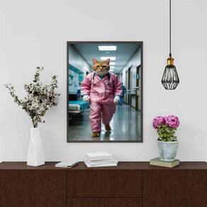 Quadro decorativo médico gato 45x34cm Cor: moldura branca Informações do produto tire todas as suas dúvidas no descritivo abaixo: decoração para quarto, sala, cozinha, escritório, área gourmet e muito mais. Chega de paredes vazias. Medidas - cada peça tem 45x34cm a3 . Material do papel - papel fotográfico brilhante de altíssima resolução acabamento - todos os quadros são acompanhados de uma película de acetato para proteção da imagem. - os quadros são embalados de forma segura com plástico bolha com camada dupla de acordo com o tamanho dos quadros. - de 3 meses. Meu quadro chegou. Como posso fixá-lo Você precisa apenas de um martelo e um prego, pois os quadros já vão acompanhados de penduradores. Esta é a forma mais indicada. Caso prefira, você pode utilizar uma fita dupla face neste caso, sugerimos de alta qualidade para evitar que descole e seu quadro caia . Como posso limpar meu quadro A limpeza é feita como um móvel comum da sua casa. Apenas um pano seco ou espanador são suficientes para tal Ean: 7891234546326
