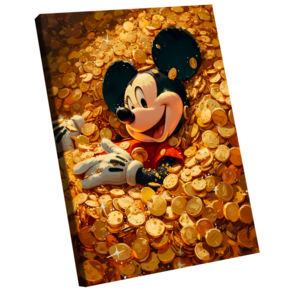 Quadro Decorativo Mickey Mouse Ouro Moldura Preta - 118x78cm -