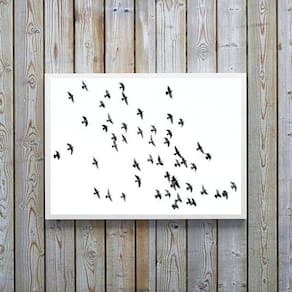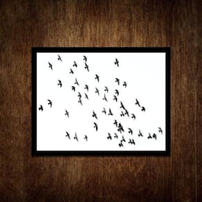 Quadro decorativo minimalista pássaros voando 24x18cm - com vidro Moldura: madeira preta Informações do produto tire todas as suas dúvidas no descritivo abaixo: decoração para quarto, sala, cozinha, escritório, área gourmet e muito mais. Chega de paredes vazias medidas - cada peça tem 24x18cm a5 . Material do papel - papel fotográfico brilhante de altíssima resolução acabamento - todos os quadros são acompanhados de vidro para proteção da imagem. - moldura em madeira maciça na cor preta ou branca conforme produto escolhido e pendurador . - os quadros são embalados de forma segura com plástico bolha com camada dupla de acordo com o tamanho dos quadros. Garantia - garantia de 3 meses. Meu quadro chegou. Como posso fixá-lo Você precisa apenas de um martelo e um prego, pois os quadros já vão acompanhados de penduradores. Esta é a forma mais indicada. Como posso limpar meu quadro A limpeza é feita como um móvel comum da sua casa. Apenas um pano seco ou espanador são suficientes para tal Ean: 7895467342465