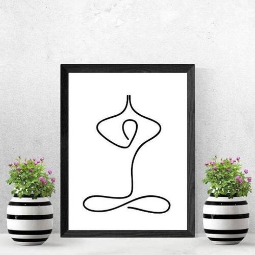 Quadro decorativo minimalista yoga 45x34cm - com vidro Moldura: madeira preta Informações do produto Decoração para quarto, sala, cozinha, escritório, área gourmet e muito mais. Chega de paredes vazias: medidas - cada peça tem 45x34cm a3 . Material do papel - papel fotográfico brilhante de altíssima resolução acabamento - todos os quadros são acompanhados de vidro para proteção da imagem. - moldura em madeira maciça na cor preta e pendurador. - os quadros são embalados de forma segura com plástico bolha com camada dupla de acordo com o tamanho dos quadros. - de 3 meses. Meu quadro chegou. Como posso fixá-lo Você precisa apenas de um martelo e um prego, pois os quadros já vão acompanhados de penduradores. Esta é a forma mais indicada. Como posso limpar meu quadro A limpeza é feita como um móvel comum da sua casa. Apenas um pano seco ou espanador são suficientes para tal Ean: 7895142186025
