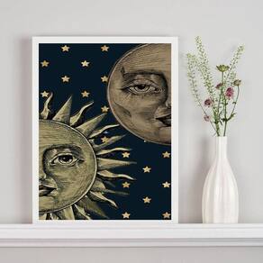Quadro decorativo mistico sol e lua - metades 24x18cm - com vidro Cor: moldura branca Informações do produto tire todas as suas dúvidas no descritivo abaixo: decoração para quarto, sala, cozinha, escritório, área gourmet e muito mais. Chega de paredes vazias medidas - cada peça tem 24x18cm a5 . Material do papel - papel fotográfico brilhante de altíssima resolução acabamento - todos os quadros são acompanhados de vidro para proteção da imagem. - moldura em madeira maciça na cor preta ou branca conforme produto escolhido e pendurador . - os quadros são embalados de forma segura com plástico bolha com camada dupla de acordo com o tamanho dos quadros. - de 3 meses. Meu quadro chegou. Como posso fixá-lo Você precisa apenas de um martelo e um prego, pois os quadros já vão acompanhados de penduradores. Esta é a forma mais indicada. Como posso limpar meu quadro A limpeza é feita como um móvel comum da sua casa. Apenas um pano seco ou espanador são suficientes para tal Marca: Não Informado