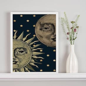 Quadro Decorativo Mistico Sol E Lua - Metades 24X18Cm