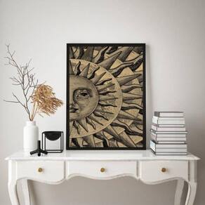 Quadro decorativo mistico sol - metade 33x24cm Cor: moldura branca Informações do produto tire todas as suas dúvidas no descritivo abaixo: decoração para quarto, sala, cozinha, escritório, área gourmet e muito mais. Chega de paredes vazias medidas - cada peça tem 33x24cm a4 . Material do papel - papel fotográfico brilhante de altíssima resolução acabamento - todos os quadros são acompanhados de uma película de acetato para proteção da imagem. - os quadros são embalados de forma segura com plástico bolha com camada dupla de acordo com o tamanho dos quadros. - de 3 meses. Meu quadro chegou. Como posso fixá-lo Você precisa apenas de um martelo e um prego, pois os quadros já vão acompanhados de penduradores. Esta é a forma mais indicada. Caso prefira, você pode utilizar uma fita dupla face neste caso, sugerimos de alta qualidade para evitar que descole e seu quadro caia . Como posso limpar meu quadro A limpeza é feita como um móvel comum da sua casa. Apenas um pano seco ou espanador são suficientes para tal Marca: Não Informado
