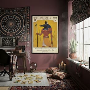 Quadro Decorativo Mitologia Egípcia Anubis - 70x50cm - Cor: Moldura Preta