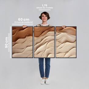 Quadro Decorativo Modelo Areia com 3 telas com 50x75cm ou 60x90cm para Sala, Escritório, Quarto, Hall de Entrada, Casa de Praia, Lavabo.ENVIO EM ATÉ 5 DIAS ÚTEIS!Especificações Técnicas: Modelo: Areia;Medidas: 50x75cm ou 60x90cm;Material da Imagem: Papel premium fotográfico de alta qualidade;Material da Moldura: Madeira de reflorestamento revestida;Espessura da Moldura: 2cm de profundidade;Acabamento: Fita Kraft;Acompanha: Suporte de serrilha para quadros e parafusos.Expresse sua linguagem visual, torne seus ambientes mais bonitos e confortáveis! Não perca a oportunidade de adquirir o exclusivo Quadro Decorativo Modelo Areia com 3 Telas a um preço incrível. Acompanha Fixação para Parede: Sim Ambiente Principal: Escritório Espessura: 28 mm Espessura do Vidro: 3 mm Itens Inclusos: 3 Quadros e Suporte para Fixação Marca: ARTE PRÓPRIA Material Principal: Madeira Maciça Origem do Produto: Nacional Peso: 12 kg Possui Paspatur: Não Possui Vidro: Sim Tema da Estampa: Abstrato Tipo de Quadro: Quadro Marca: Não Informado