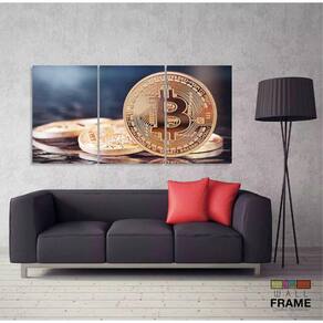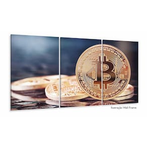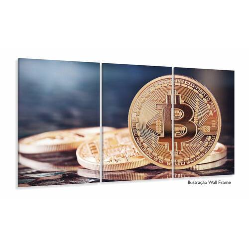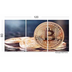 Quadro Decorativo Moeda Bitcoin 120x60 3 peças