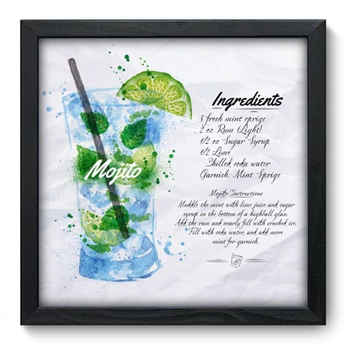 Quadro Decorativo com Moldura e Vidro - Mojito - Os quadros da Allodi ficam bem em todos os ambientes, na sala, no quarto, na cozinha, na varanda e até no cantinho do churrasco, dão um toque de qualidade na decoração do ambiente, com gancho na parte de trás para pendurar na parede ou colocar na prateleira. - Fabricados em madeira de alta qualidade (não é madeira pintada e nem MDF) e vidro anti-risco garantindo maior qualidade e beleza da imagem.