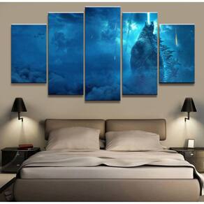 Quadro Decorativo Monstro Godzila7 5 peças 130x65 cm em teci