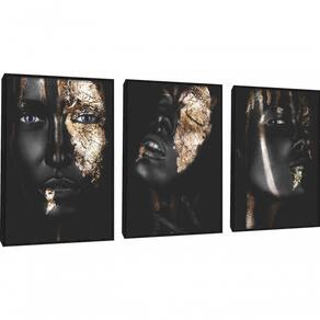 Quadro Decorativo Mulher Negra Maquiagem Com Moldura Preto