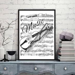 Quadro decorativo music violino 33x24cm - com vidro Moldura: madeira preta Informações do produto tire todas as suas dúvidas no descritivo abaixo: decoração para quarto, sala, cozinha, escritório, área gourmet e muito mais. Chega de paredes vazias medidas - cada peça tem 33x24cm a4 . Material do papel - papel fotográfico brilhante de altíssima resolução acabamento - todos os quadros são acompanhados de vidro para proteção da imagem. - moldura em madeira maciça na cor preta e pendurador . - os quadros são embalados de forma segura com plástico bolha com camada dupla de acordo com o tamanho dos quadros. - de 3 meses. Meu quadro chegou. Como posso fixá-lo Você precisa apenas de um martelo e um prego, pois os quadros já vão acompanhados de penduradores. Esta é a forma mais indicada. Como posso limpar meu quadro A limpeza é feita como um móvel comum da sua casa. Apenas um pano seco ou espanador são suficientes para tal Ean: 7895142248907