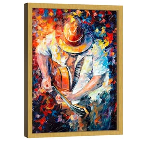 Quadro Decorativo Músico Estilo Pintura Moldura Preta - 84x54cm -