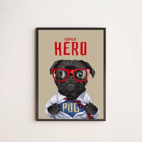 Quadro decorativo my super hero pug 45x34cm Tamanho: a3 45 x 34 Acabamento: película de acetato Moldura: madeira branca Informações do produto Tire todas as suas dúvidas no descritivo abaixo: Decoração para quarto, sala, cozinha, escritório, área gourmet e muito mais. Chega de paredes vazias Medidas - cada peça tem 45x34cm a3 . Material do papel - papel fotográfico brilhante de altíssima resolução Acabamento - todos os quadros são acompanhados de uma película de acetato para proteção da imagem. - moldura em madeira maciça na cor preta ou branca e pendurador móvel que pode ser retirado facilmente caso deseje fixar com fita dupla face. - os quadros são embalados de forma segura com plástico bolha com camada dupla de acordo com o tamanho dos quadros. - de 3 meses Prazo de envio Pedimos 24 horas úteis no máximo para enviar seu pedido após o envio, segue os prazos normais dos correios, cerca de 7 exceto para norte e nordeste, que pode ser de até 14 . Em diversas cidades, este prazo normalmente é reduzido, mas depende do prazo dos correios. Meu quadro chegou. Como posso fixá-lo Você precisa apenas de um martelo e um prego, pois os quadros já vão acompanhados de penduradores. Esta é a forma mais indicada. Caso prefira, você pode utilizar uma fita dupla face neste caso, sugerimos de alta qualidade para evitar que descole e seu quadro caia . Como posso limpar meu quadro A limpeza é feita como um móvel comum da sua casa. Apenas um pano seco ou espanador são suficientes para tal Marca: Não Informado