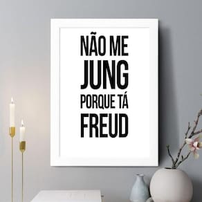 Quadro decorativo não me jung porque tá freud 24x18cm - com vidro Cor: moldura preta Informações do produto tire todas as suas dúvidas no descritivo abaixo: decoração para quarto, sala, cozinha, escritório, área gourmet e muito mais. Chega de paredes vazias medidas - cada peça tem 24x18cm a5 . Material do papel - papel fotográfico brilhante de altíssima resolução acabamento - todos os quadros são acompanhados de vidro para proteção da imagem. - moldura em madeira maciça na cor preta ou branca conforme produto escolhido e pendurador . - os quadros são embalados de forma segura com plástico bolha com camada dupla de acordo com o tamanho dos quadros. Garantia - garantia de 3 meses. Meu quadro chegou. Como posso fixá-lo Você precisa apenas de um martelo e um prego, pois os quadros já vão acompanhados de penduradores. Esta é a forma mais indicada. Como posso limpar meu quadro A limpeza é feita como um móvel comum da sua casa. Apenas um pano seco ou espanador são suficientes para tal