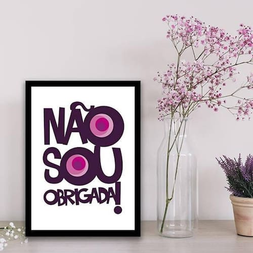 Com o Quadro Decorativo da Quadros On-Line você transforma a decoração do seu ambiente, com beleza e bom gosto. Preencha aquela parede vazia com um quadro de alta qualidade, papel fotográfico brilhante de altíssima resolução e moldura em madeira maciça. Para maior proteção, a peça ainda conta com uma película de acetato. Características: - Papel fotográfico brilhante de altíssima resolução - Película de acetato para proteção da imagem - Moldura em madeira maciça - Pendurador móvel que pode ser retirado facilmente - Pode ser fixado com fita dupla face Especificações técnicas Marca: Quadros On-Line Modelo: Não Sou Obrigada Material: Papel fotográfico brilhante Acabamento: Película de acetato Moldura: Madeira Cor moldura: Preto Tamanho: 45 x 34 cm - A3 Fixação: Prego ou fita dupla face de alta qualidade Acompanha pendurador: Sim : 3 meses Dica de limpeza A limpeza é feita como um móvel comum da sua casa. Apenas um pano seco ou espanador são suficientes para tal. Marca: Não Informado