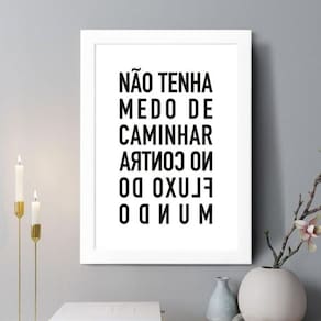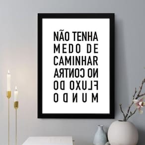 Quadro decorativo não tenha medo de caminhar 45x34cm Cor: moldura preta Informações do produto tire todas as suas dúvidas no descritivo abaixo: decoração para quarto, sala, cozinha, escritório, área gourmet e muito mais. Chega de paredes vazias. Medidas - cada peça tem 45x34cm a3 . Material do papel - papel fotográfico brilhante de altíssima resolução acabamento - todos os quadros são acompanhados de uma película de acetato para proteção da imagem. - os quadros são embalados de forma segura com plástico bolha com camada dupla de acordo com o tamanho dos quadros. Garantia - garantia de 3 meses. Meu quadro chegou. Como posso fixá-lo Você precisa apenas de um martelo e um prego, pois os quadros já vão acompanhados de penduradores. Esta é a forma mais indicada. Caso prefira, você pode utilizar uma fita dupla face neste caso, sugerimos de alta qualidade para evitar que descole e seu quadro caia . Como posso limpar meu quadro A limpeza é feita como um móvel comum da sua casa. Apenas um pano seco ou espanador são suficientes para tal