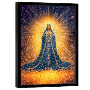 Quadro Decorativo Nossa Senhora Aparecida Luz Moldura Dourada e Vidro - 84x54cm -