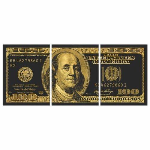 Este Quadro Decorativo é indicado para quem gosta de ambientes modernos e coloridos. Os Quadros Em Telas, além de modernos são muito práticos, pois já estão prontos para decoração. Além disso, esse tipo de quadro permite uma excelente qualidade das imagens e quando customizados, criam efeitos e impacto visual em seu ambiente.O quadro é produzido em tela tipo painel e não precisa moldura, já vem pronto para pendurar na parede. O quadro é impresso tecido sintético com textura similar ao canvas e superfície semi-brilho, esticado em chassi de madeira pinus com madeira tratada de reflorestamento.Características:- Quadro decorativo sem moldura- Composto por 3 Peças- Impresso tecido sintético com textura similar ao canvas e superfície semi-brilho- Você pode fixar com pregos de aço, parafusos e bucha, dupla face e cola quenteEspecificações TécnicasProduto: Quadro DecorativoModelo: Nota 100 DólaresMedidas: 3x 50x65cmQuantidade de Peças: 3 PeçasMaterial: Madeira e tecido sintéticoIdeal para: Escritórios, sala, hall e demais ambientesConteúdo da Embalagem: 1 quadro composto por 3 peças formando o tamanho de 160x65Limpeza e Manutenção:Para limpeza, utilize apenas um espanador ou um pano umedecido com água, sem produtos químicos, isso irá garantir também a durabilidade do produto.