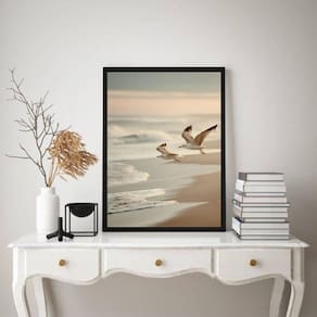 Quadro decorativo nuances bege - praia pássaros 45x34cm Cor: moldura branca Informações do produto tire todas as suas dúvidas no descritivo abaixo: decoração para quarto, sala, cozinha, escritório, área gourmet e muito mais. Chega de paredes vazias. Medidas - cada peça tem 45x34cm a3 . Material do papel - papel fotográfico brilhante de altíssima resolução acabamento - todos os quadros são acompanhados de uma película de acetato para proteção da imagem. - os quadros são embalados de forma segura com plástico bolha com camada dupla de acordo com o tamanho dos quadros. - de 3 meses. Meu quadro chegou. Como posso fixá-lo Você precisa apenas de um martelo e um prego, pois os quadros já vão acompanhados de penduradores. Esta é a forma mais indicada. Caso prefira, você pode utilizar uma fita dupla face neste caso, sugerimos de alta qualidade para evitar que descole e seu quadro caia . Como posso limpar meu quadro A limpeza é feita como um móvel comum da sua casa. Apenas um pano seco ou espanador são suficientes para tal Marca: Não Informado