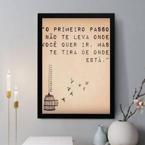 Quadro decorativo o primeiro passo 45x34cm Cor: moldura preta Informações do produto tire todas as suas dúvidas no descritivo abaixo: decoração para quarto, sala, cozinha, escritório, área gourmet e muito mais. Chega de paredes vazias. Medidas - cada peça tem 45x34cm a3 . Material do papel - papel fotográfico brilhante de altíssima resolução acabamento - todos os quadros são acompanhados de uma película de acetato para proteção da imagem. - os quadros são embalados de forma segura com plástico bolha com camada dupla de acordo com o tamanho dos quadros. Garantia - garantia de 3 meses. Meu quadro chegou. Como posso fixá-lo Você precisa apenas de um martelo e um prego, pois os quadros já vão acompanhados de penduradores. Esta é a forma mais indicada. Caso prefira, você pode utilizar uma fita dupla face neste caso, sugerimos de alta qualidade para evitar que descole e seu quadro caia . Como posso limpar meu quadro A limpeza é feita como um móvel comum da sua casa. Apenas um pano seco ou espanador são suficientes para tal