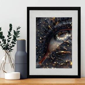 Quadro decorativo olho fios dourados 60x4cm Cor: moldura branca Informações do produto tire todas as suas dúvidas no descritivo abaixo: decoração para quarto, sala, cozinha, escritório, área gourmet e muito mais. Chega de paredes vazias medidas - cada peça tem 60x48cm . Material do papel - papel fotográfico brilhante de altíssima resolução acabamento - todos os quadros são acompanhados de vidro para proteção da imagem. - moldura em madeira maciça na cor preta ou branca conforme produto escolhido e pendurador. - paspatur branco com 7cm de largura - os quadros são embalados de forma segura com plástico bolha com camada dupla de acordo com o tamanho dos quadros. Garantia - garantia de 3 meses. Meu quadro chegou. Como posso fixá-lo Você precisa apenas de um martelo e um prego, pois os quadros já vão acompanhados de penduradores. Esta é a forma mais indicada. Como posso limpar meu quadro A limpeza é feita como um móvel comum da sua casa. Apenas um pano seco ou espanador são suficientes para tal