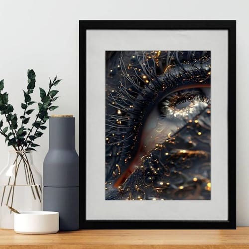 Quadro decorativo olho fios dourados 60x4cm Cor: moldura preta Informações do produto tire todas as suas dúvidas no descritivo abaixo: decoração para quarto, sala, cozinha, escritório, área gourmet e muito mais. Chega de paredes vazias medidas - cada peça tem 60x48cm . Material do papel - papel fotográfico brilhante de altíssima resolução acabamento - todos os quadros são acompanhados de vidro para proteção da imagem. - moldura em madeira maciça na cor preta ou branca conforme produto escolhido e pendurador. - paspatur branco com 7cm de largura - os quadros são embalados de forma segura com plástico bolha com camada dupla de acordo com o tamanho dos quadros. Garantia - garantia de 3 meses. Meu quadro chegou. Como posso fixá-lo Você precisa apenas de um martelo e um prego, pois os quadros já vão acompanhados de penduradores. Esta é a forma mais indicada. Como posso limpar meu quadro A limpeza é feita como um móvel comum da sua casa. Apenas um pano seco ou espanador são suficientes para tal