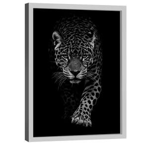 Quadro Decorativo Onça no Preto Moldura Preta - 60x40cm -