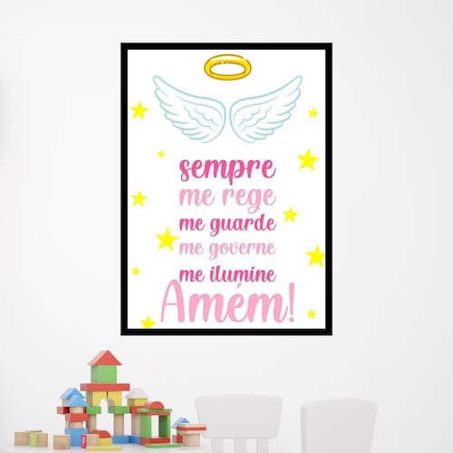 Quadro decorativo oração - anjo da guarda rosa 45x34cm Tamanho: a3 45 x 34 Acabamento: película de acetato Moldura: madeira preta Informações do produto Tire todas as suas dúvidas no descritivo abaixo: Decoração para quarto, sala, cozinha, escritório, área gourmet e muito mais. Chega de paredes vazias Medidas - cada peça tem 45x34cm a3 . Material do papel - papel fotográfico brilhante de altíssima resolução Acabamento - todos os quadros são acompanhados de uma película de acetato para proteção da imagem. - moldura em madeira maciça na cor preta ou branca e pendurador móvel que pode ser retirado facilmente caso deseje fixar com fita dupla face. - os quadros são embalados de forma segura com plástico bolha com camada dupla de acordo com o tamanho dos quadros. - de 3 meses Marca: Não Informado