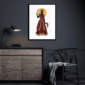 Quadro decorativo orixá iansã - 60x48cm Moldura: madeira branca Informações do produto tire todas as suas dúvidas no descritivo abaixo: decoração para quarto, sala, cozinha, escritório, área gourmet e muito mais. Chega de paredes vazias medidas - cada peça tem 60x48cm . Material do papel - papel fotográfico brilhante de altíssima resolução acabamento - todos os quadros são acompanhados de vidro para proteção da imagem. - moldura em madeira maciça na cor preta ou branca conforme produto escolhido e pendurador. - paspatur branco com 7cm de largura - os quadros são embalados de forma segura com plástico bolha com camada dupla de acordo com o tamanho dos quadros. Garantia - garantia de 3 meses. Meu quadro chegou. Como posso fixá-lo Você precisa apenas de um martelo e um prego, pois os quadros já vão acompanhados de penduradores. Esta é a forma mais indicada. Como posso limpar meu quadro A limpeza é feita como um móvel comum da sua casa. Apenas um pano seco ou espanador são suficientes para tal Ean: 7893549028153