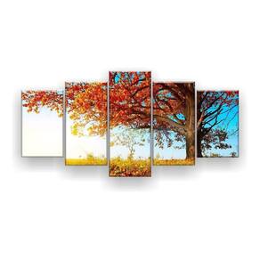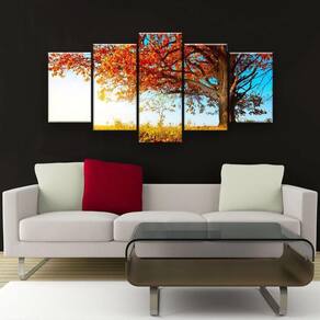 Quadro Decorativo Outono Árvore Céu Azul 129x61 Sala Quarto