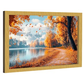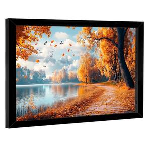 Quadro Decorativo Paisagem de Outono Cênica Moldura Preta - 84x54cm -