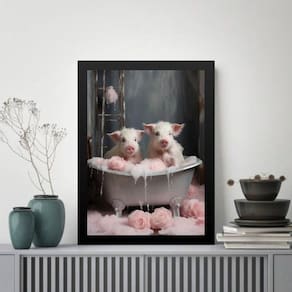 Quadro decorativo para banheiro - porquinhos 24x18cm Cor: moldura preta Informações do produto tire todas as suas dúvidas no descritivo abaixo: decoração para quarto, sala, cozinha, escritório, área gourmet e muito mais. Chega de paredes vazias medidas - cada peça tem 24x18cm a5 . Material do papel - papel fotográfico brilhante de altíssima resolução acabamento - todos os quadros são acompanhados de uma película de acetato para proteção da imagem. - os quadros são embalados de forma segura com plástico bolha com camada dupla de acordo com o tamanho dos quadros. Garantia - garantia de 3 meses. Meu quadro chegou. Como posso fixá-lo Você precisa apenas de um martelo e um prego, pois os quadros já vão acompanhados de penduradores. Esta é a forma mais indicada. Caso prefira, você pode utilizar uma fita dupla face neste caso, sugerimos de alta qualidade para evitar que descole e seu quadro caia . Como posso limpar meu quadro A limpeza é feita como um móvel comum da sua casa. Apenas um pano seco ou espanador são suficientes para tal