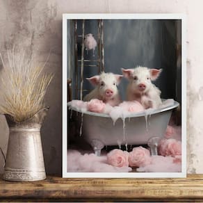 Quadro decorativo para banheiro - porquinhos 45x34cm Cor: moldura branca Informações do produto tire todas as suas dúvidas no descritivo abaixo: decoração para quarto, sala, cozinha, escritório, área gourmet e muito mais. Chega de paredes vazias. Medidas - cada peça tem 45x34cm a3 . Material do papel - papel fotográfico brilhante de altíssima resolução acabamento - todos os quadros são acompanhados de uma película de acetato para proteção da imagem. - os quadros são embalados de forma segura com plástico bolha com camada dupla de acordo com o tamanho dos quadros. Garantia - garantia de 3 meses. Meu quadro chegou. Como posso fixá-lo Você precisa apenas de um martelo e um prego, pois os quadros já vão acompanhados de penduradores. Esta é a forma mais indicada. Caso prefira, você pode utilizar uma fita dupla face neste caso, sugerimos de alta qualidade para evitar que descole e seu quadro caia . Como posso limpar meu quadro A limpeza é feita como um móvel comum da sua casa. Apenas um pano seco ou espanador são suficientes para tal