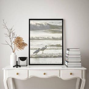 Quadro decorativo passarinhos brancos praia 33x24cm Moldura: madeira branca Informações do produto tire todas as suas dúvidas no descritivo abaixo: decoração para quarto, sala, cozinha, escritório, área gourmet e muito mais. Chega de paredes vazias medidas - cada peça tem 33x24cm a4 . Material do papel - papel fotográfico brilhante de altíssima resolução acabamento - todos os quadros são acompanhados de uma película de acetato para proteção da imagem. - os quadros são embalados de forma segura com plástico bolha com camada dupla de acordo com o tamanho dos quadros. Garantia - garantia de 3 meses. Meu quadro chegou. Como posso fixá-lo Você precisa apenas de um martelo e um prego, pois os quadros já vão acompanhados de penduradores. Esta é a forma mais indicada. Caso prefira, você pode utilizar uma fita dupla face neste caso, sugerimos de alta qualidade para evitar que descole e seu quadro caia . Como posso limpar meu quadro A limpeza é feita como um móvel comum da sua casa. Apenas um pano seco ou espanador são suficientes para tal Ean: 7898236443165