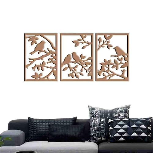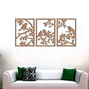 Tamanho total: 122cm (comprimento) x 60cm (altura) ( com espaçamento recomendado de 1 cm entre peças,) Peças laterais: 60x40 cm peça central: 60x40 cm Espaçamento entre as peças: 1 cm A instalação é bem simples, não será preciso fazer sujeira furando a parede pois utilizamos o método bem prático para instalar, contém fita dupla face 3m no verso do quadro.