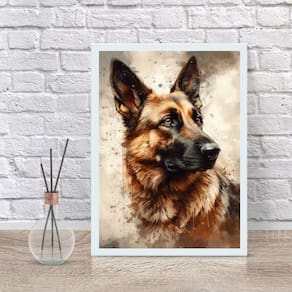 Quadro decorativo pastor alemão aquarela 33x24cm Moldura: madeira preta Informações do produto tire todas as suas dúvidas no descritivo abaixo: decoração para quarto, sala, cozinha, escritório, área gourmet e muito mais. Chega de paredes vazias medidas - cada peça tem 33x24cm a4 . Material do papel - papel fotográfico brilhante de altíssima resolução acabamento - todos os quadros são acompanhados de uma película de acetato para proteção da imagem. - os quadros são embalados de forma segura com plástico bolha com camada dupla de acordo com o tamanho dos quadros. Garantia - garantia de 3 meses. Meu quadro chegou. Como posso fixá-lo Você precisa apenas de um martelo e um prego, pois os quadros já vão acompanhados de penduradores. Esta é a forma mais indicada. Caso prefira, você pode utilizar uma fita dupla face neste caso, sugerimos de alta qualidade para evitar que descole e seu quadro caia . Como posso limpar meu quadro A limpeza é feita como um móvel comum da sua casa. Apenas um pano seco ou espanador são suficientes para tal Ean: 7894158384005