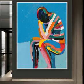 Quadro Decorativo Peso das Emoções Pintura Moldura Branca - 180x105cm -