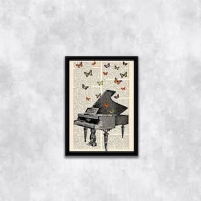 Quadro decorativo piano com borboletas 45x34cm - com vidro Moldura: madeira preta Informações do produto tire todas as suas dúvidas no descritivo abaixo: decoração para quarto, sala, cozinha, escritório, área gourmet e muito mais. Chega de paredes vazias medidas - cada peça tem 45x34cm a3 . Material do papel - papel fotográfico brilhante de altíssima resolução acabamento - todos os quadros são acompanhados de vidro para proteção da imagem. - moldura em madeira maciça na cor preta e pendurador . - os quadros são embalados de forma segura com plástico bolha com camada dupla de acordo com o tamanho dos quadros. - de 3 meses. Meu quadro chegou. Como posso fixá-lo Você precisa apenas de um martelo e um prego, pois os quadros já vão acompanhados de penduradores. Esta é a forma mais indicada. Como posso limpar meu quadro A limpeza é feita como um móvel comum da sua casa. Apenas um pano seco ou espanador são suficientes para tal Ean: 7892090597811