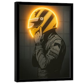 Quadro Decorativo Piloto Neon Amarelo Moldura Preta - 118x78cm -