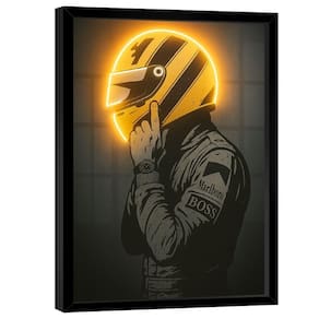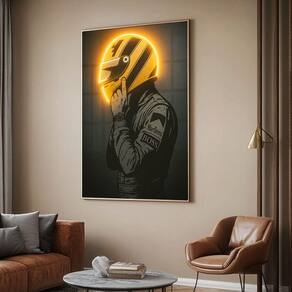 Quadro Decorativo Piloto Neon Amarelo Moldura Dourada - 84x54cm -