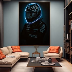 Quadro Decorativo Piloto Neon Azul Moldura Dourada - 84x54cm -
