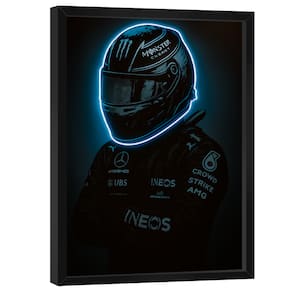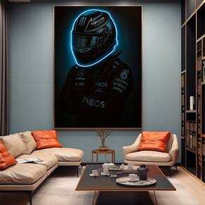 Quadro Decorativo Piloto Neon Azul Moldura Preta - 60x40cm -