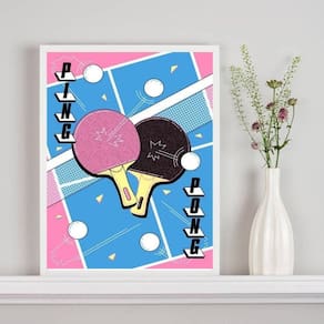 Quadro decorativo ping pong - azul e rosa 33x24cm Cor: moldura preta Informações do produto tire todas as suas dúvidas no descritivo abaixo: decoração para quarto, sala, cozinha, escritório, área gourmet e muito mais. Chega de paredes vazias medidas - cada peça tem 33x24cm a4 . Material do papel - papel fotográfico brilhante de altíssima resolução acabamento - todos os quadros são acompanhados de uma película de acetato para proteção da imagem. - os quadros são embalados de forma segura com plástico bolha com camada dupla de acordo com o tamanho dos quadros. - de 3 meses. Meu quadro chegou. Como posso fixá-lo Você precisa apenas de um martelo e um prego, pois os quadros já vão acompanhados de penduradores. Esta é a forma mais indicada. Caso prefira, você pode utilizar uma fita dupla face neste caso, sugerimos de alta qualidade para evitar que descole e seu quadro caia . Como posso limpar meu quadro A limpeza é feita como um móvel comum da sua casa. Apenas um pano seco ou espanador são suficientes para tal Marca: Não Informado