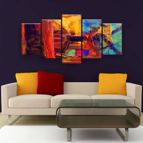Quadro Decorativo Pintura Abstrata Amarelo Vermelho 129x61