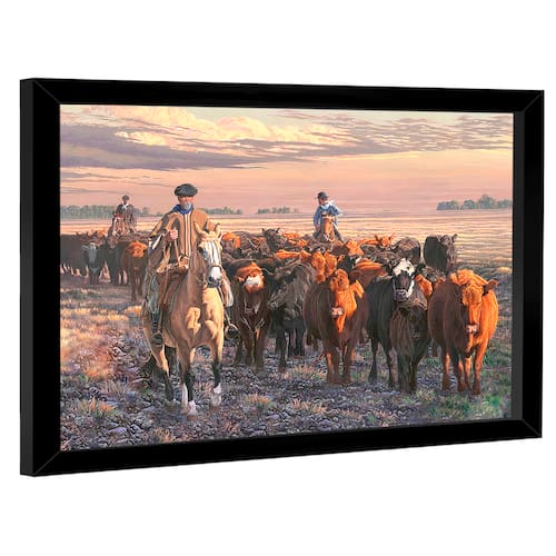 Quadro Decorativo Pintura Boiada Moldura Preta - 84x54cm -